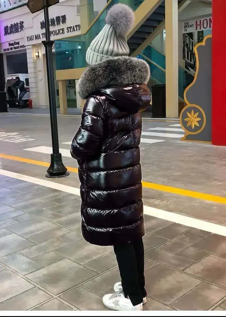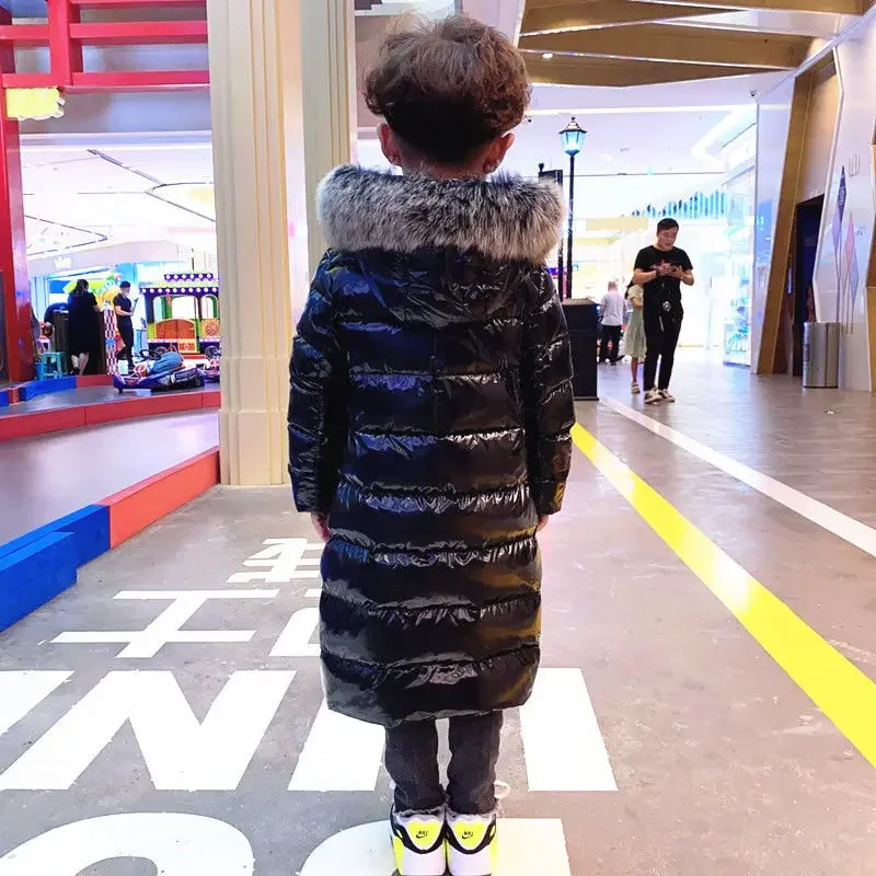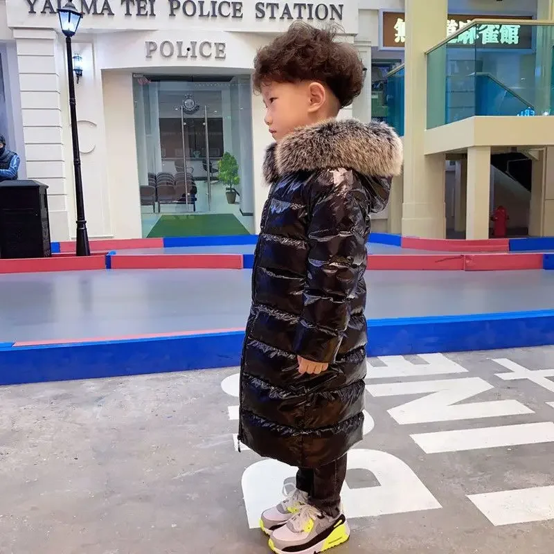 Fashion Winter Girls Coats 2024 New Teens Boys Down Jacket Real Fox Raccoon Fur Collar Kids Long Clothing Children Parka