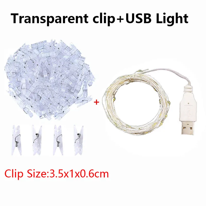 LED String Lights 2M/5M/10M Photo Clip Fairy Lights Outdoor USB Operated Garland Christmas Tree Decoration Wedding Decor