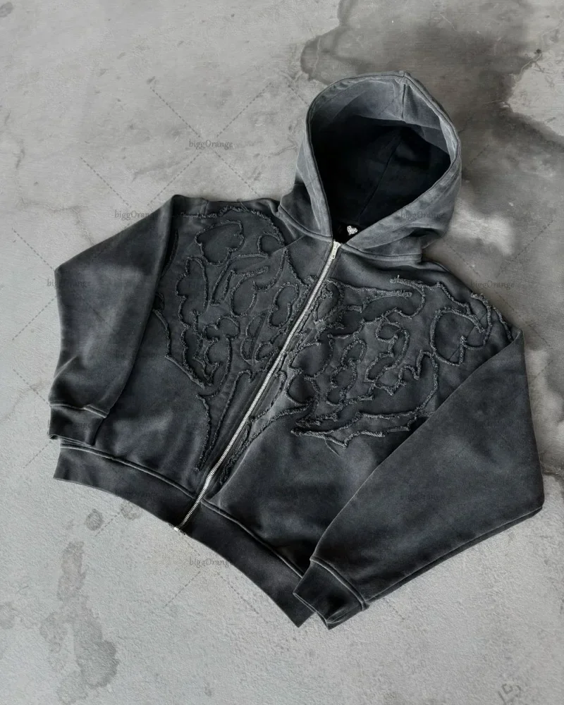 Cotton New 2025 American Y2K Harajuku Retro Gothic Punk Embroidered Zipper Hoodie Jacket Men Trend Casual Oversized Sweatshirt