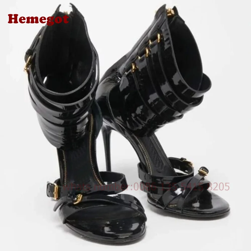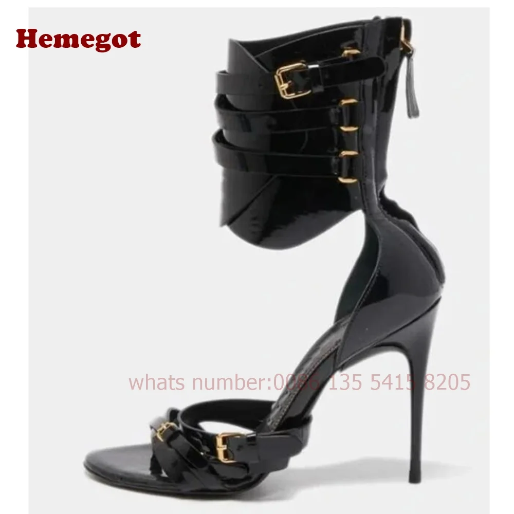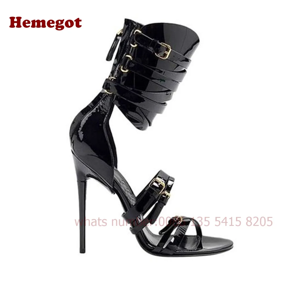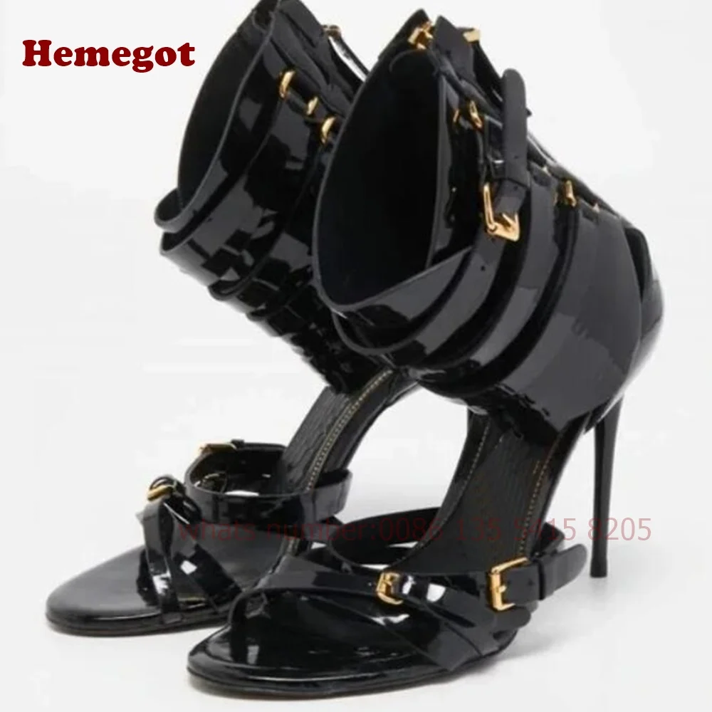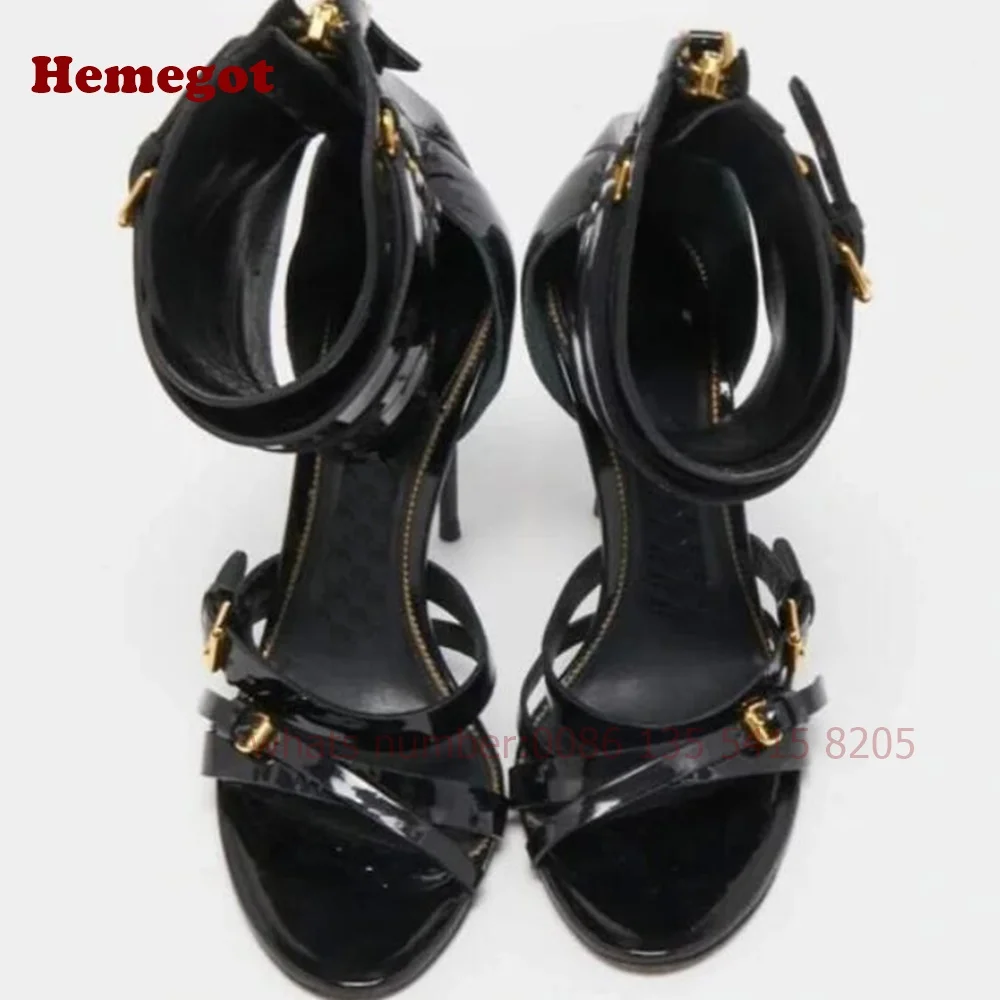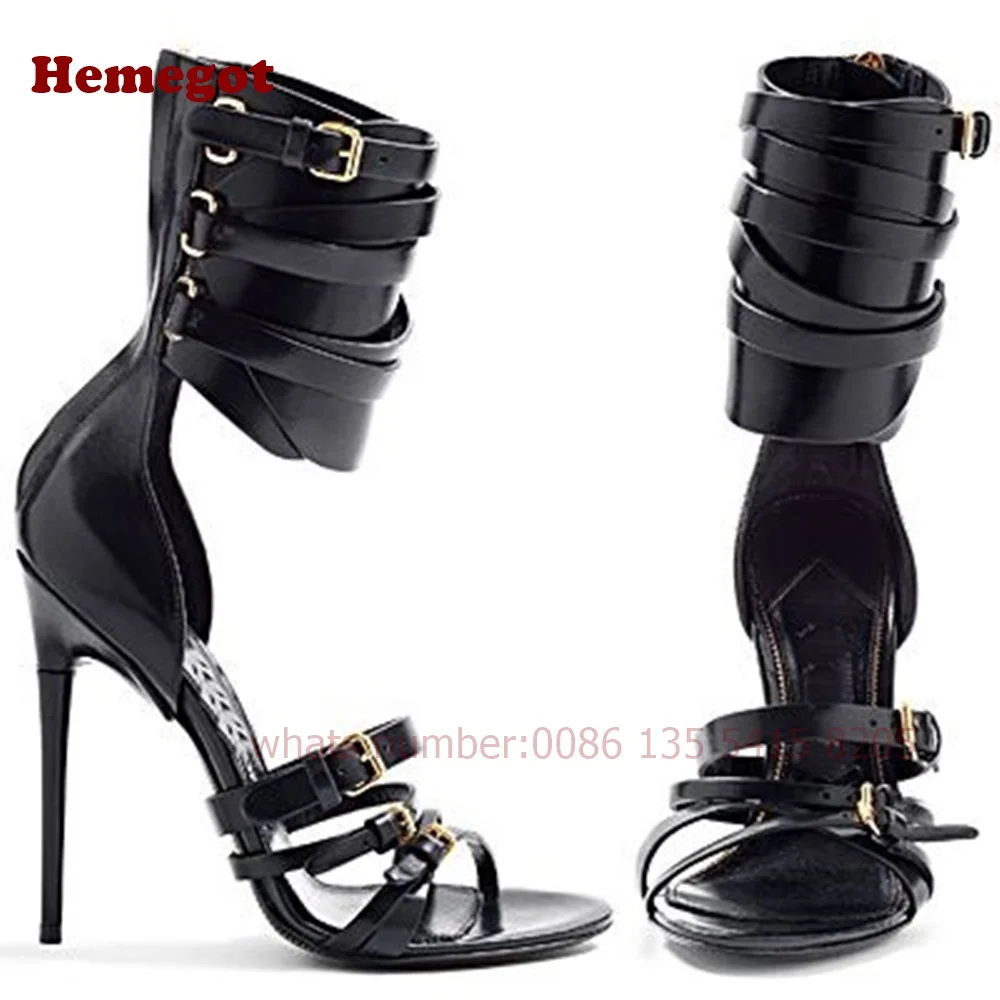 Women's Crocodie Gladiator Sandals Belt Buckle Stiletto Sexy High Heels Sandals Open Toe Black Sexy Shoes Solid Luxury Shoes