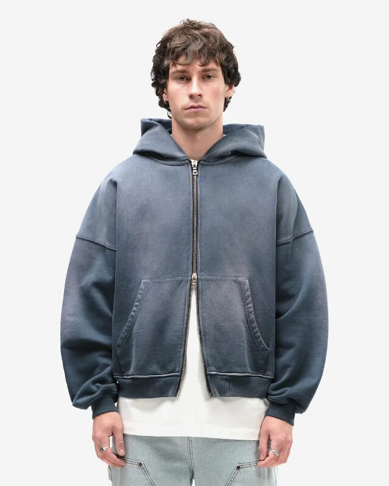 Cotton Y2K Harajuku Style New Fashion Gothic Blue Gradient Zipper Hoodies Men Streetwear Hip Hop Casual Joker Couple Sports Sweater Top